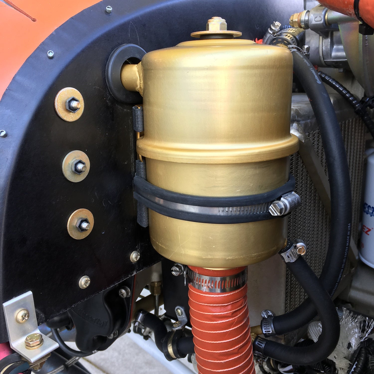 AriWolf's air/oil separator divides the crankcase gases and liquids, then returns the oil to the sump to keep your aircraft's belly clean and the oil level steady.