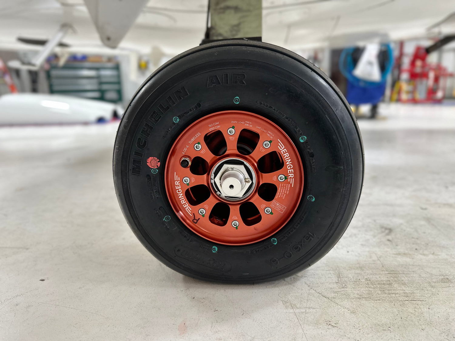 Our system stops excess in-flight rotation of the nose wheel, resulting in less vibration during climb-out, cruise, and descent. (Compatible with Beringer wheel systems only.)