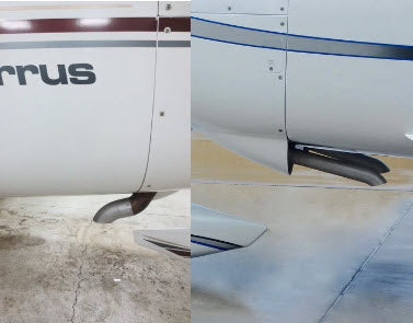 Our STC'd single exhaust tip and our PMA'd dual exhaust tips divert the hot, corrosive exhaust gases AWAY from the fuselage to prevent the potential for extensive structural damage and the annoying oily, sooty exhaust residue on the belly of your plane.